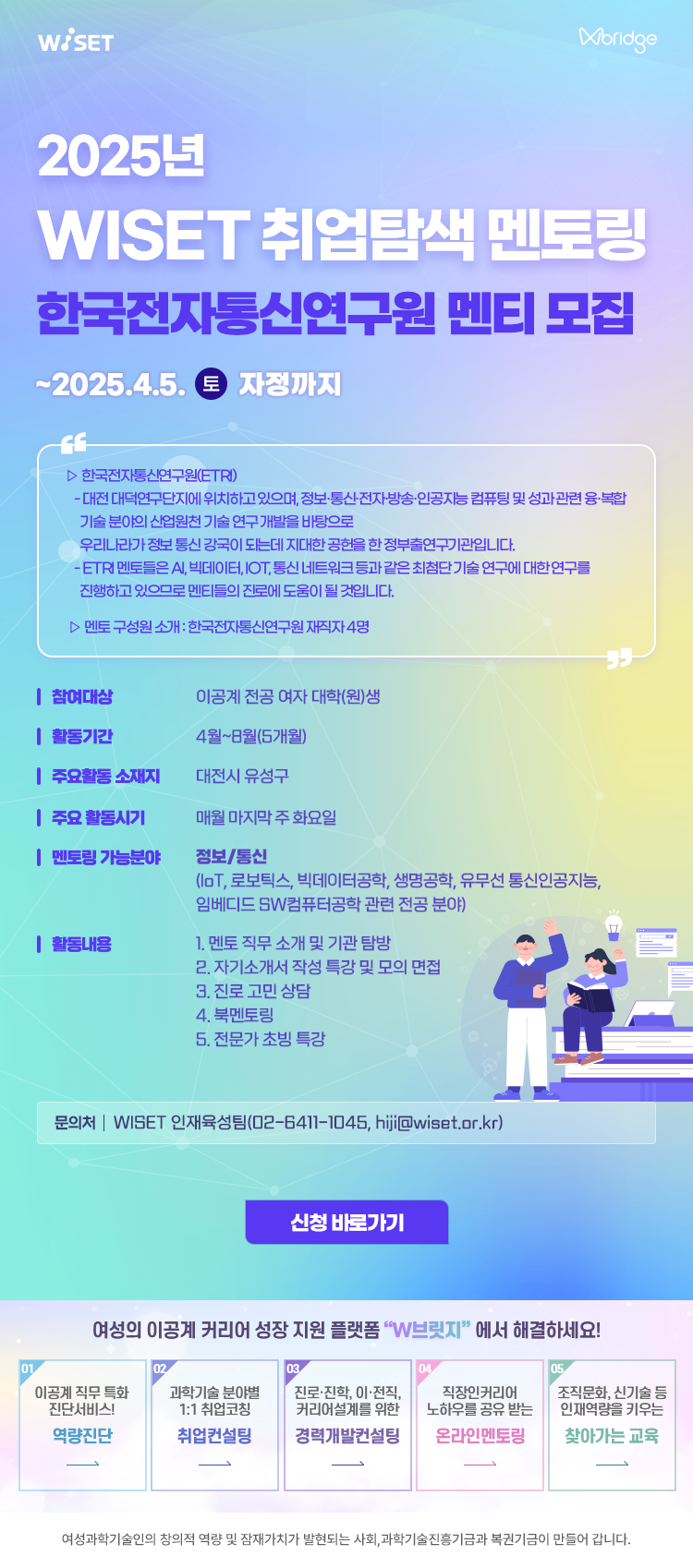 - 2025년 WISET 「취업탐색 멘토링」 참여 이공계 대학(원)생 멘티 모집