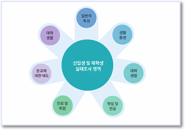 신입생 및 재학생을 대상으로 대학생활 실태조사를 실시함으로써 학생들에 대한 이해도를 높이고 학생들의 요구를 반영한 교내 정책수립을 위한 정보제공 및 제언을 하는 데 목표를 둠.