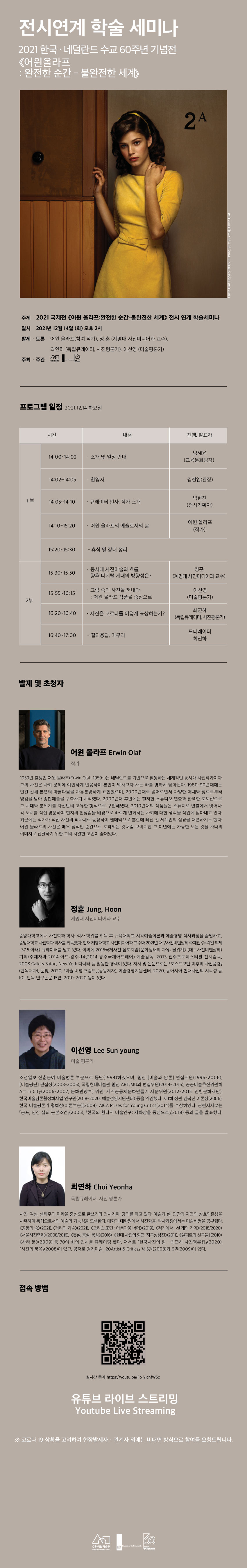 - [수원시립미술관] 수원시립미술관《어윈 올라프: 완전한 순간-불완전한 세계》전시연계 학술 세미나 개최 안내