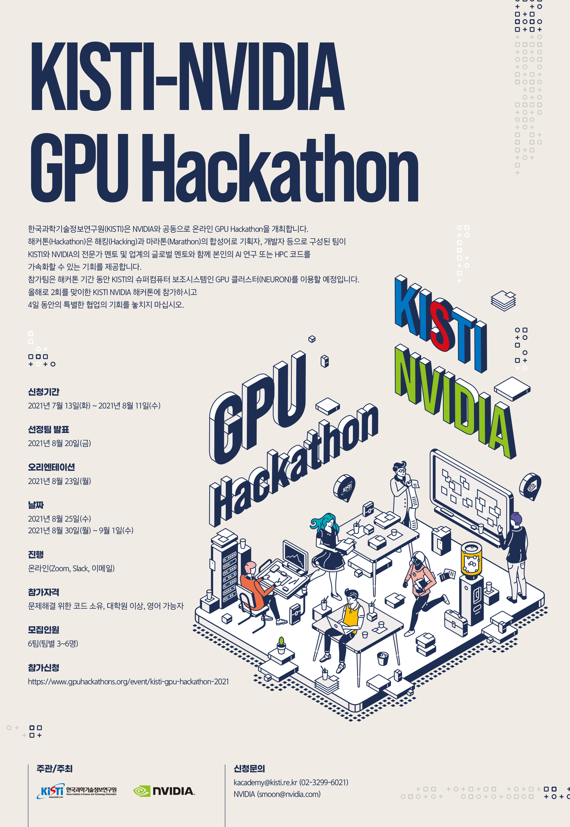 - [한국과학기술정보연구원] KISTI-NVIDIA GPU Hackathon 개최 안내