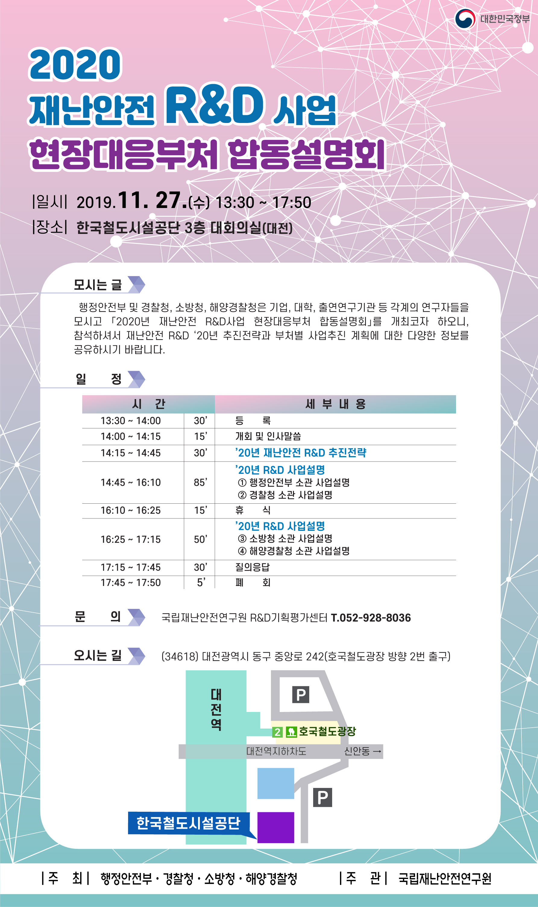 - [국립재난안전연구원] 2020년 재난안전 RnD사업 현장대응부처 합동설명회 안내 및 홍보