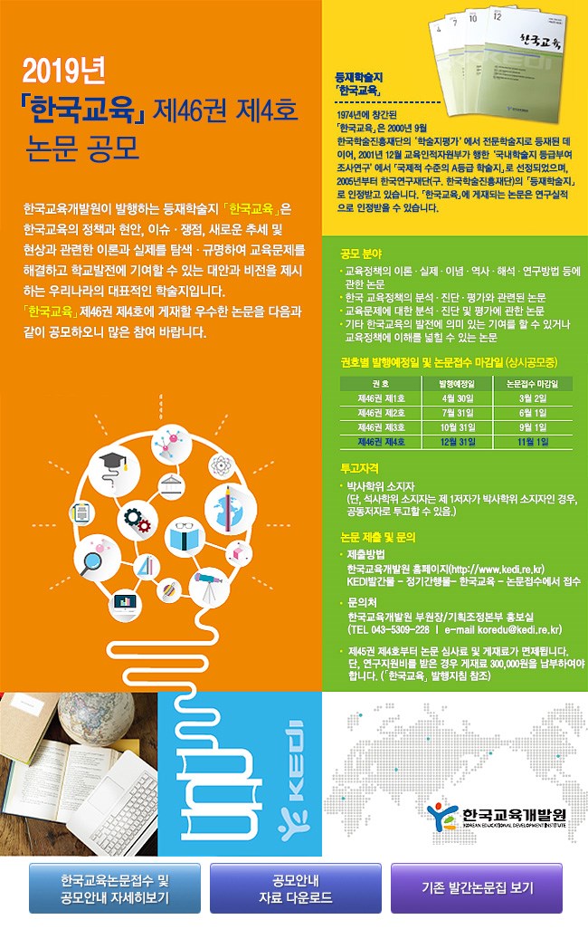- [한국교육개발원] 등재학술지 한국교육 제46권 제4호 게재논문 공모 안내