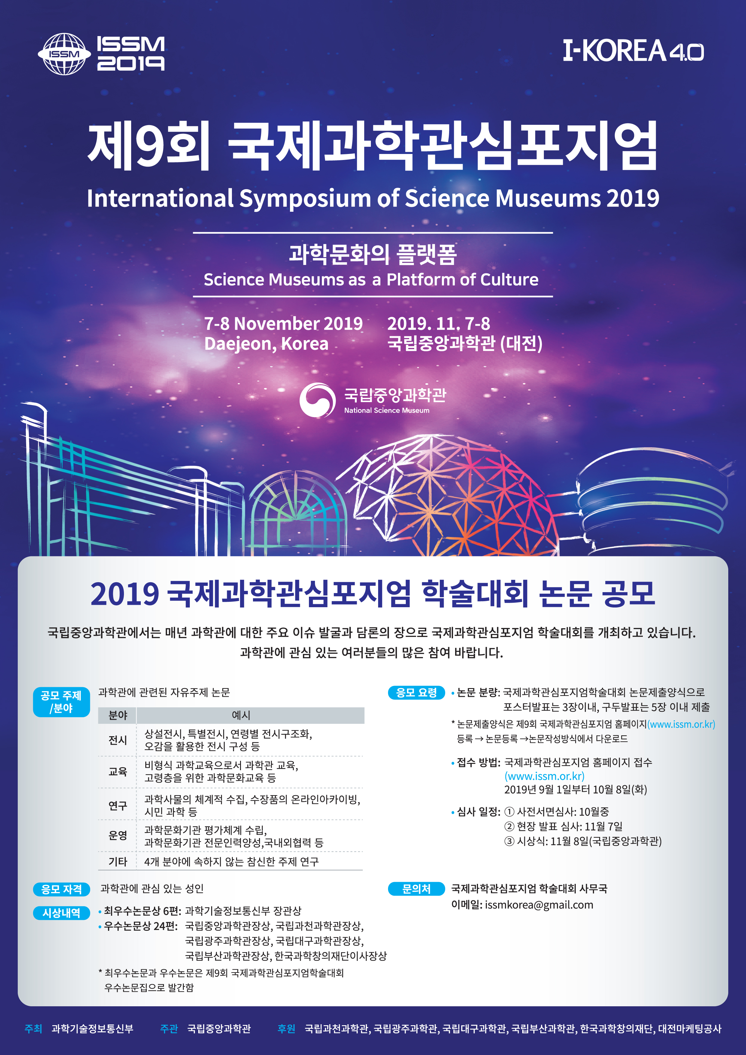 - [국립중앙과학관] ' 제9회 국제과학관심포지엄 학술대회' 논문 공모 홍보