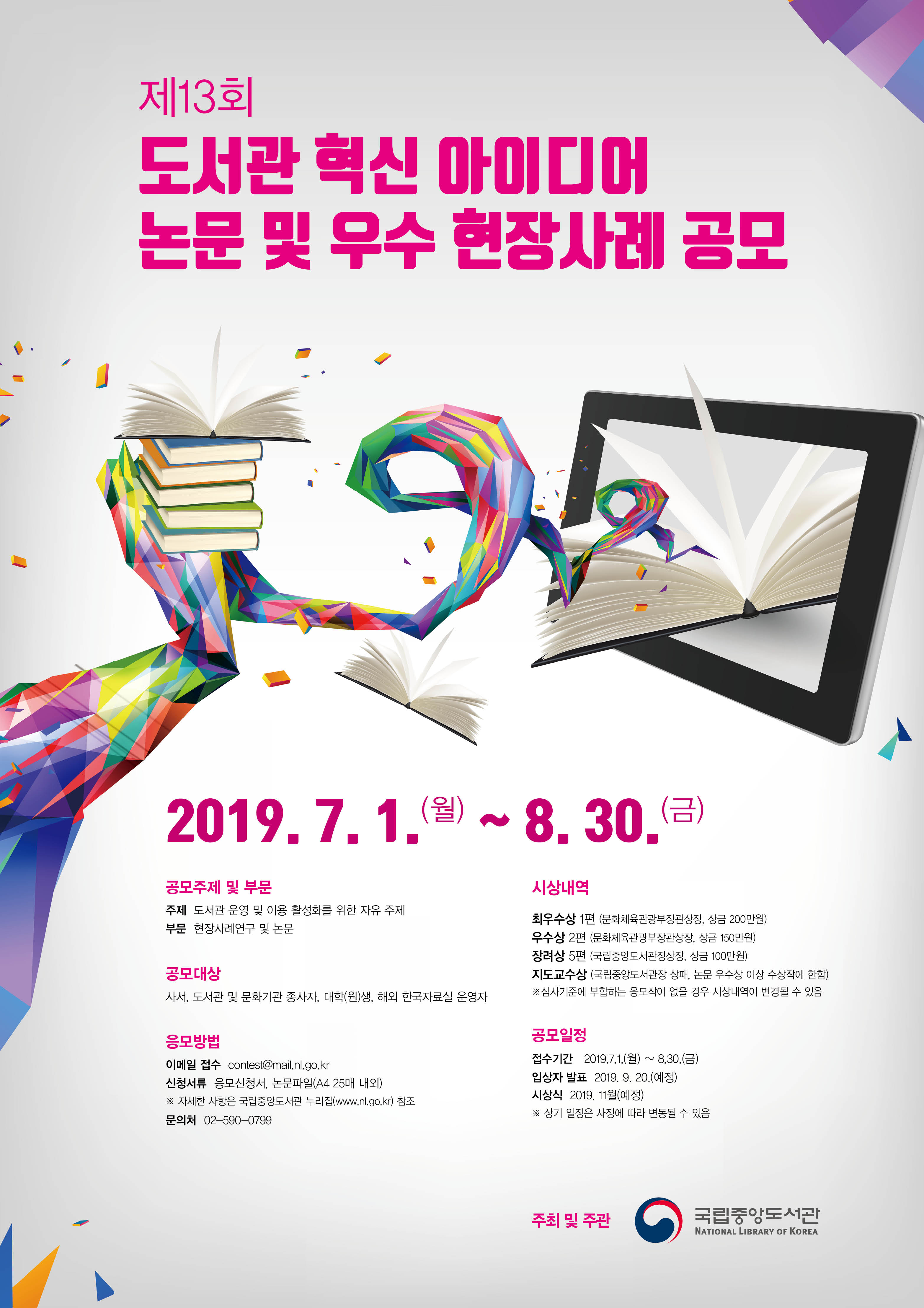 - [국립중앙도서관] 제13회 도서관 혁신 아이디어 논문 및 우수 현장사례 공모 안내