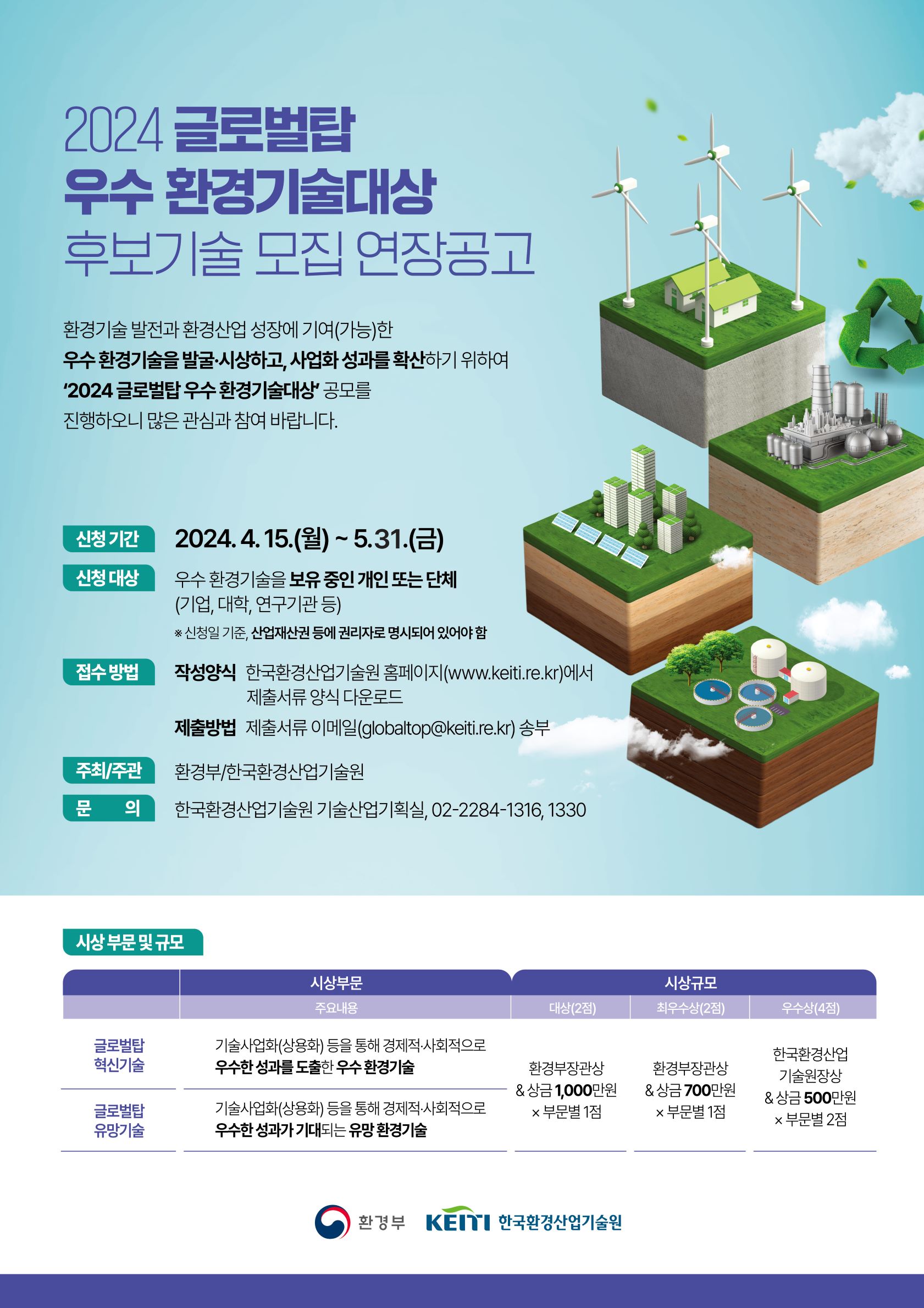 - (한국환경산업기술원)2024 글로벌탑 우수 환경기술대상 공모 기간연장 안내 및 참여 요청