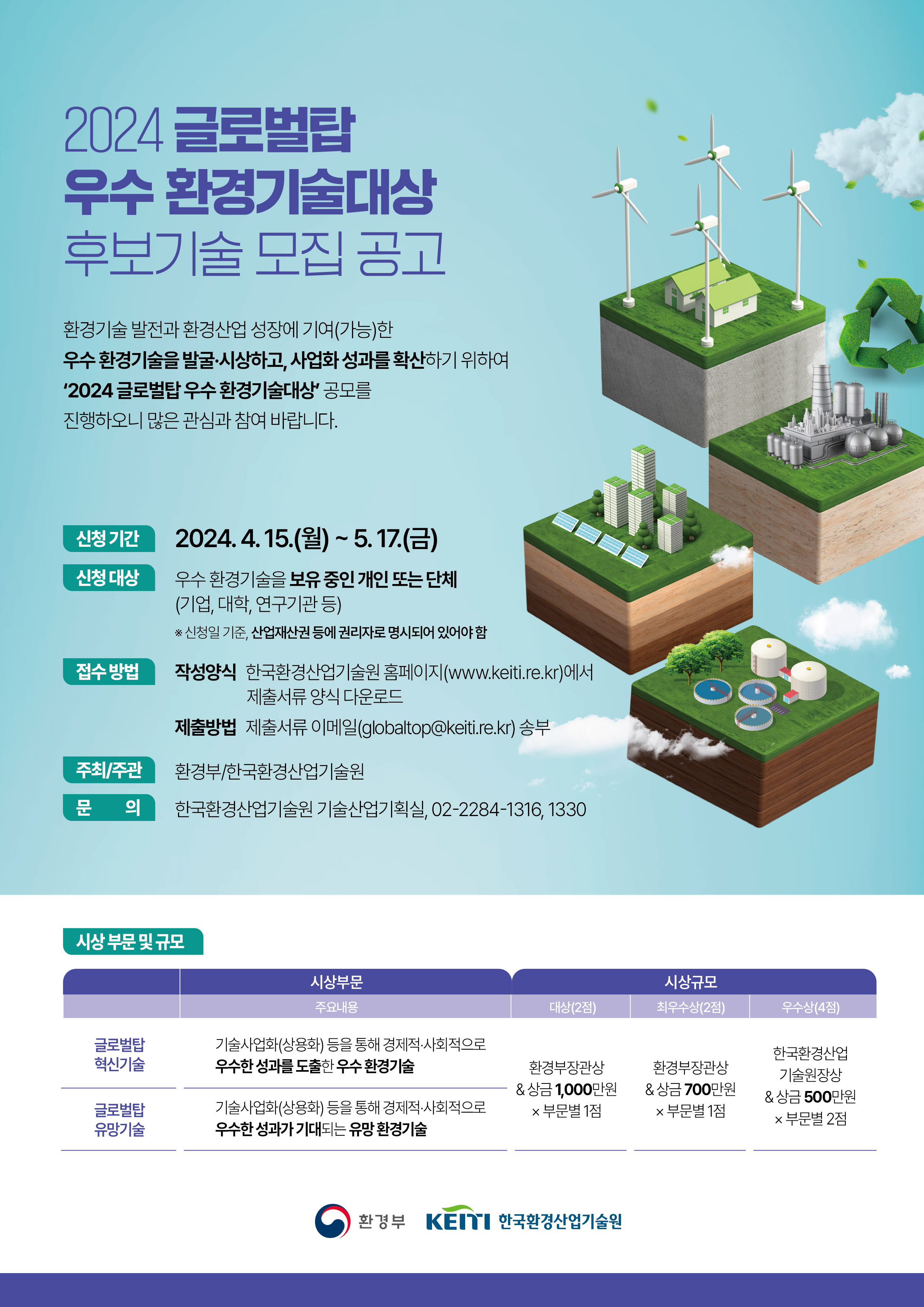 - (한국환경산업기술원)2024 글로벌탑 우수 환경기술대상 안내