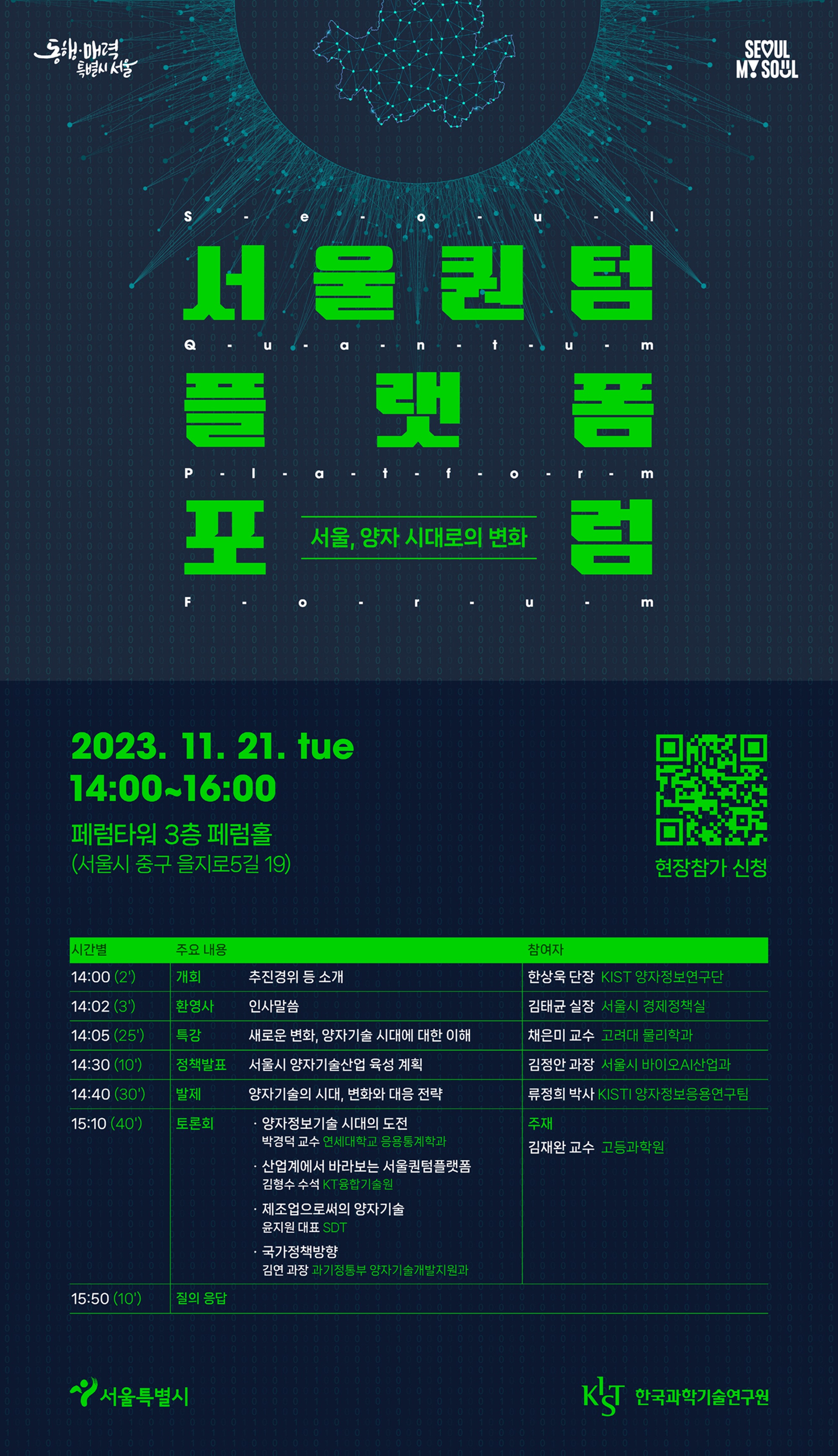- [서울특별시] 서울시 양자기술산업 육성을 위한 「서울퀸텀플랫폼 포럼」 참석 안내