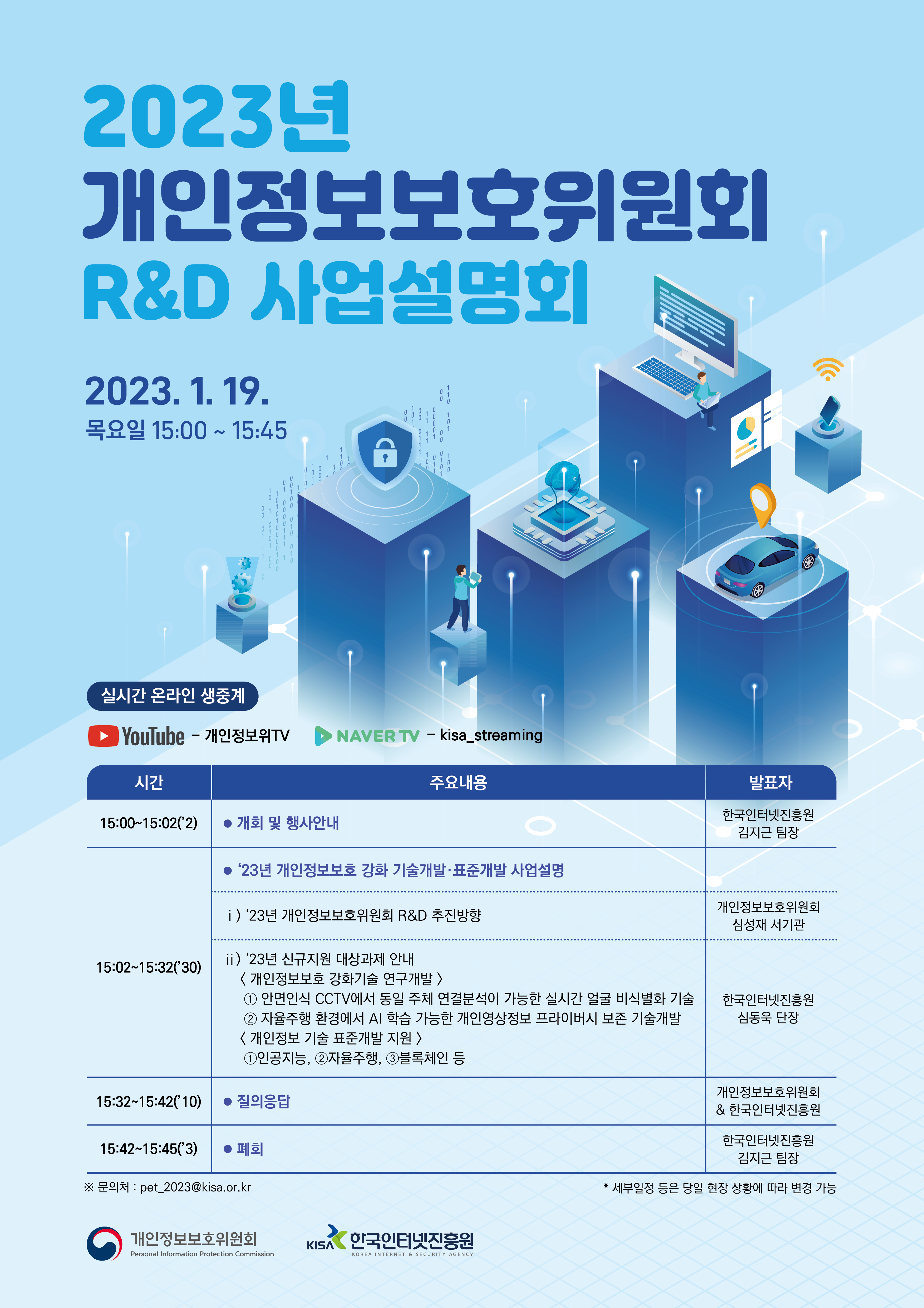 - [일반공지] (개인정보보호위원회)「2023년 개인정보 보호·활용 기술 연구개발 사업」