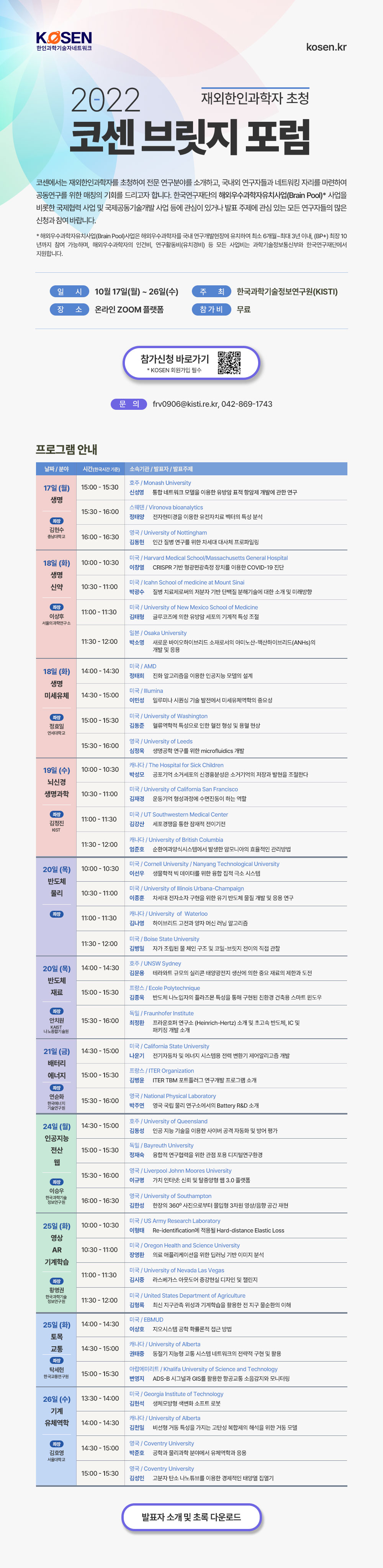 - [일반공지] [한국과학기술정보연구원] 2022 재외한인과학자 초청 코센 브릿지 포럼 안내