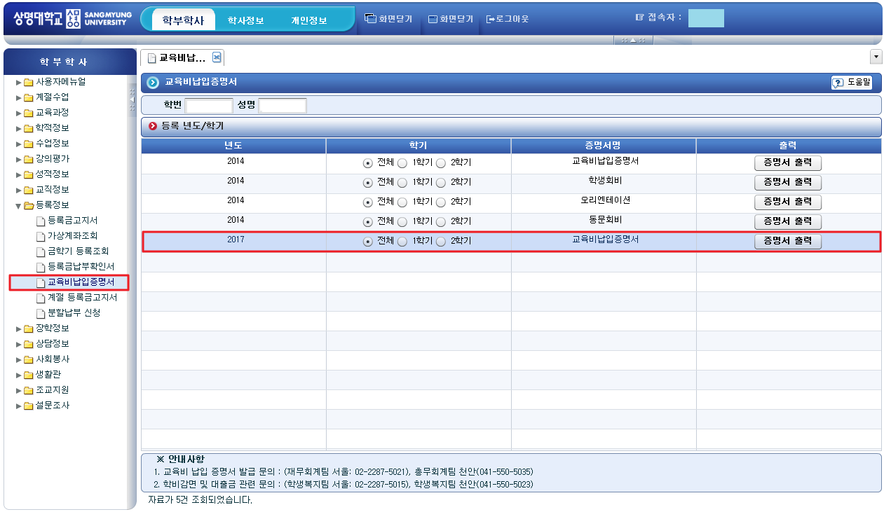 Q1. 등록금 고지서는 어떻게 출력하나요?