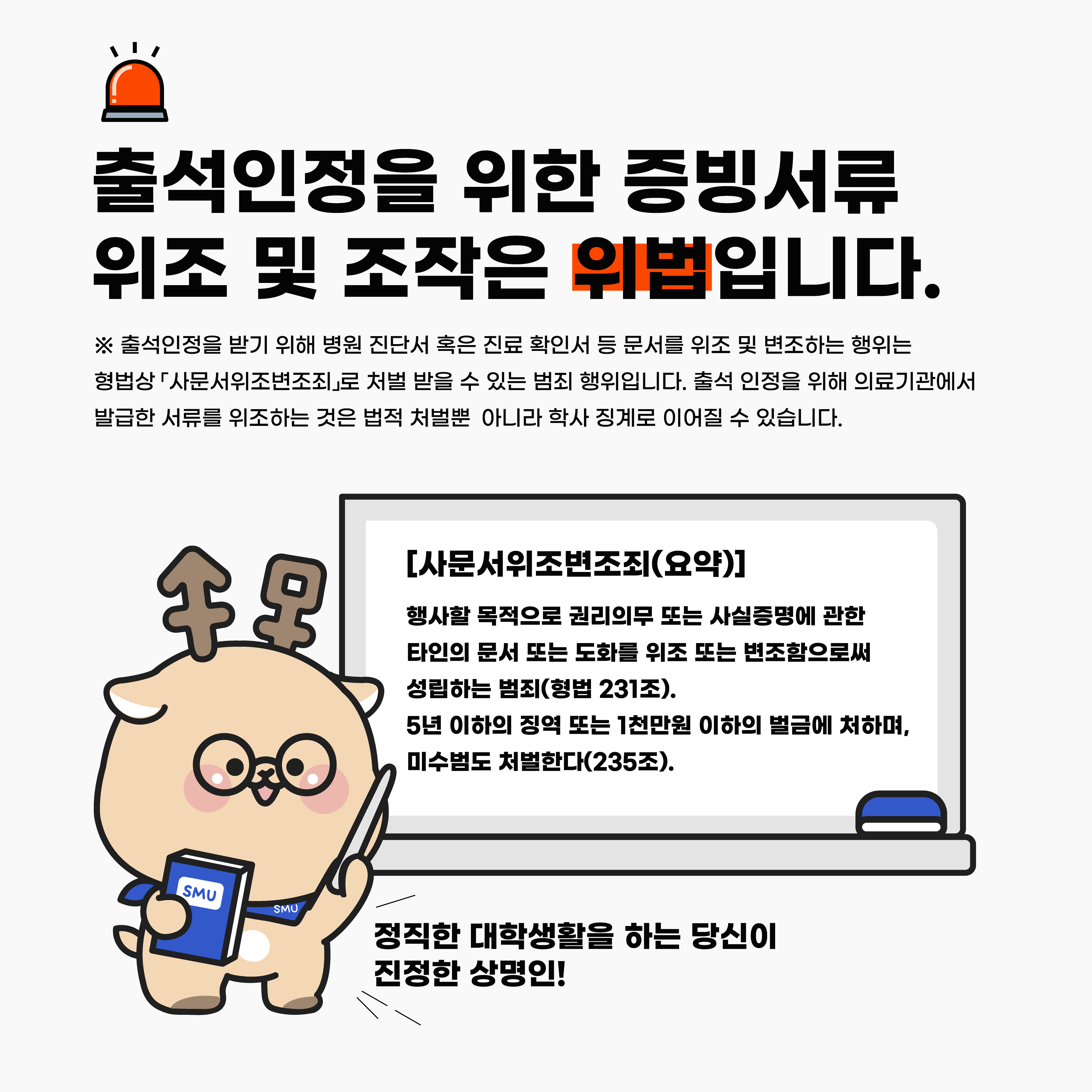 | 천안 [학사] | [교무팀] 출석인정을 위한 증빙서류 위조 및 조작 관련 안내 |