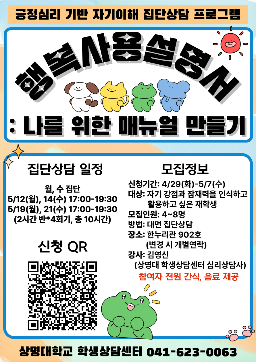 - [학생상담센터] 25-1 자기이해 집단상담 <행복사용설명서: 나를 위한 매뉴얼 만들기> 신청