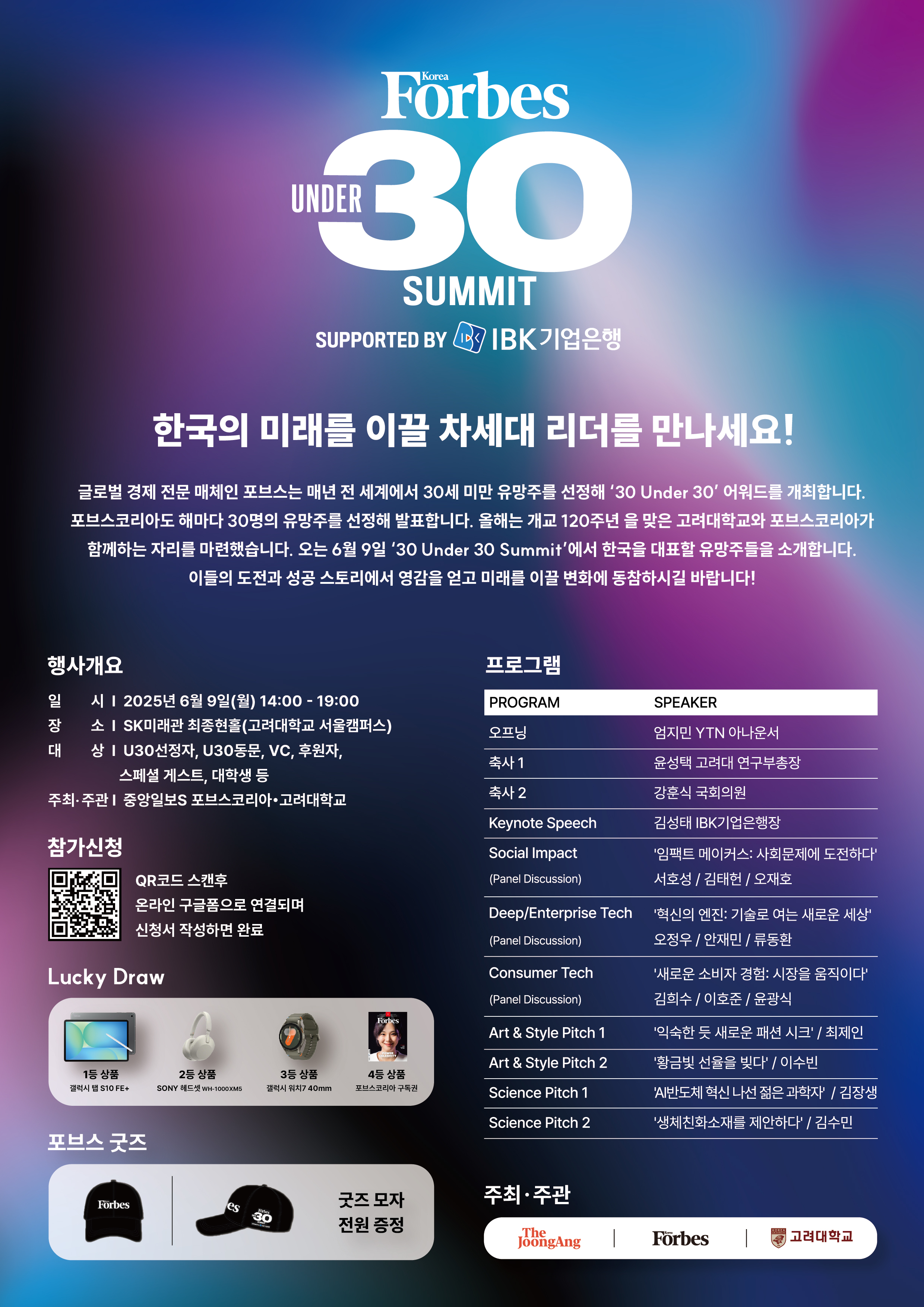 상명 [글로벌] [중앙일보S] 2025 Forbes Korea UNDER 30 SUMMIT 안내 -