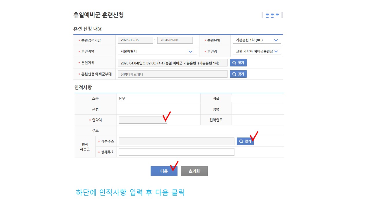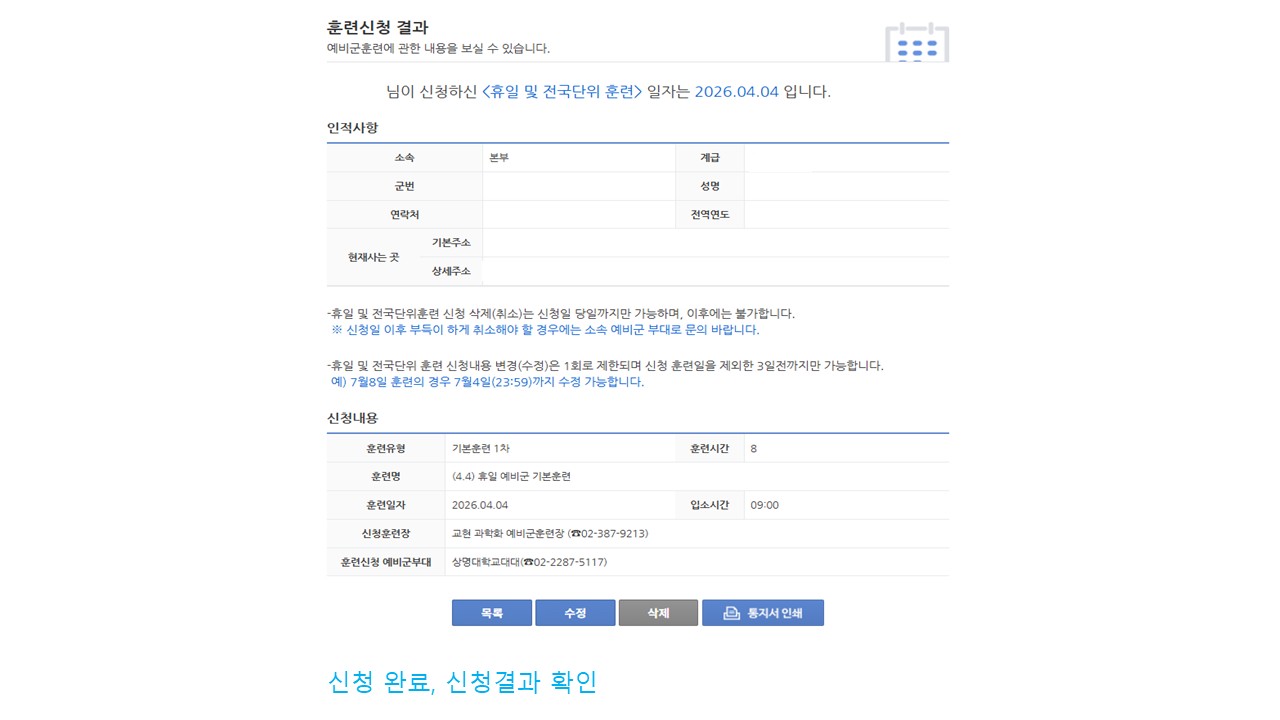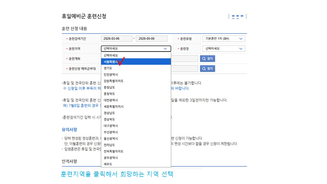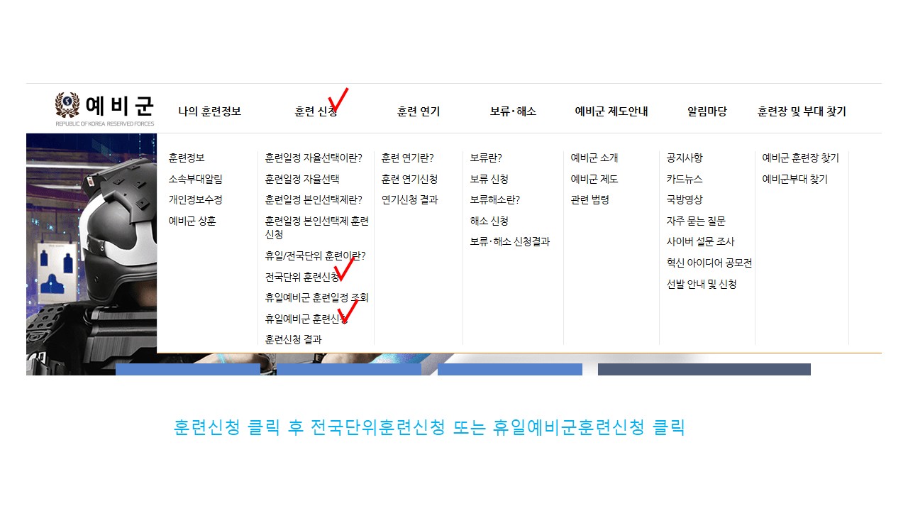 서울 [일반] [예비군대대] 전국단위/휴일예비군 훈련 신청 방법 안내 -